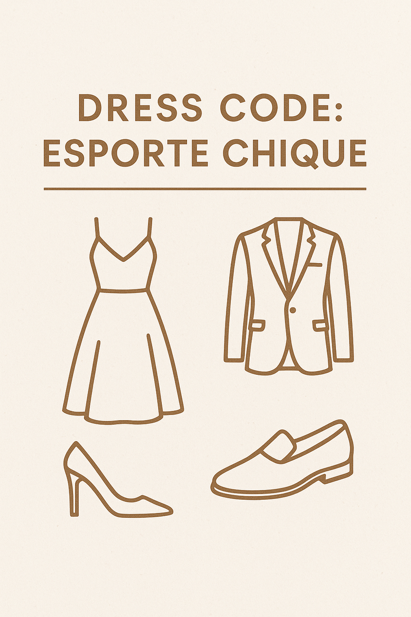 Mulheres: vestidos leves, macacões estilosos, salto opcional (mas o charme é obrigatório).